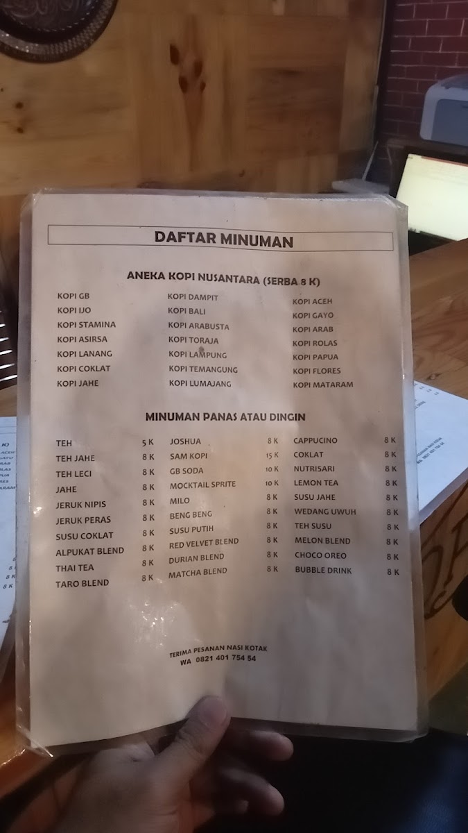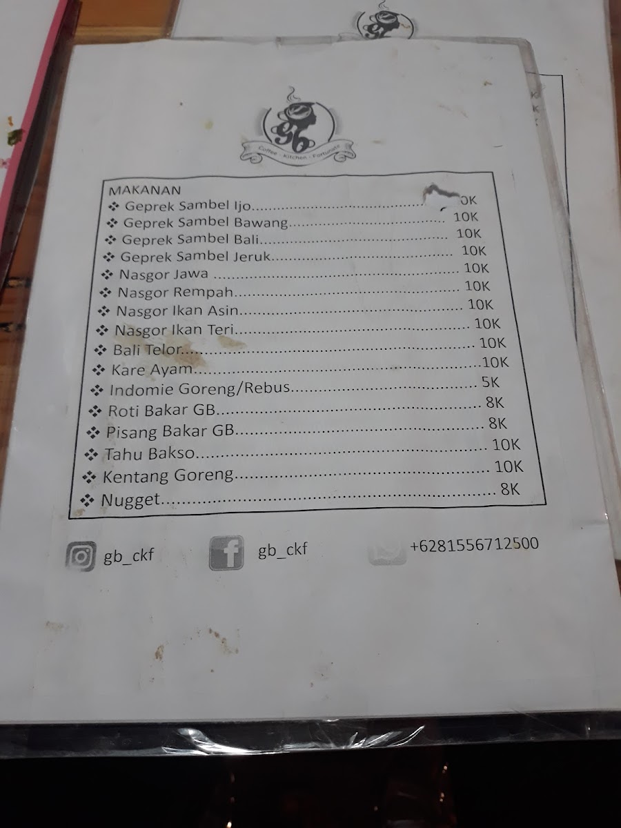 Welcome to GB Coffee Kitchen Fortunate, a cozy haven nestled in the heart of Malang, on Jl. Raya Candi VI C. This charming cafe is more than a spot for coffee; it’s a destination for food lovers and students alike. The extensive menu features everything from hearty meals like nasi goreng and rawon to delectable sweet and savory snacks. Customers rave about the food quality, often praising affordability—with prices starting around IDR 12k.
